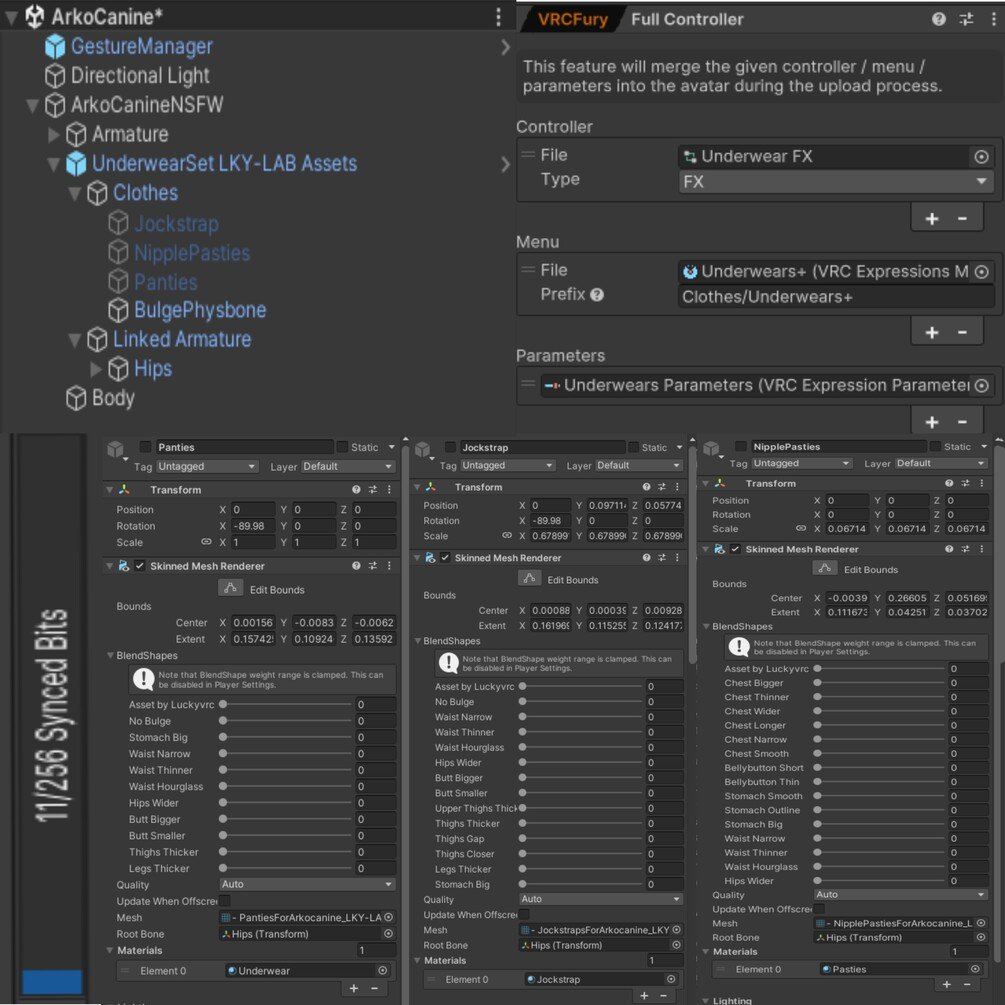 3 underwear Meshes with easy vrcfury setup for the Arkocanine 1.1.1 in a Unitypackage.
